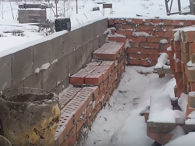 При зимней кладке крайне важно соблюдать толщину шва и выдерживать горизонтальность кладки. Несоблюдение правил подготовки растворов и ведения кладки как минимум приведет к образованию высолов, а как максимум — к появлению трещин.